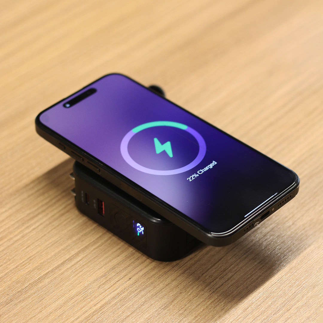TravelVolt Go can charge up to five devices at once when plugged into a power outlet. However, since the maximum output is 22.5W, charging multiple devices simultaneously may reduce the power delivered to each device.